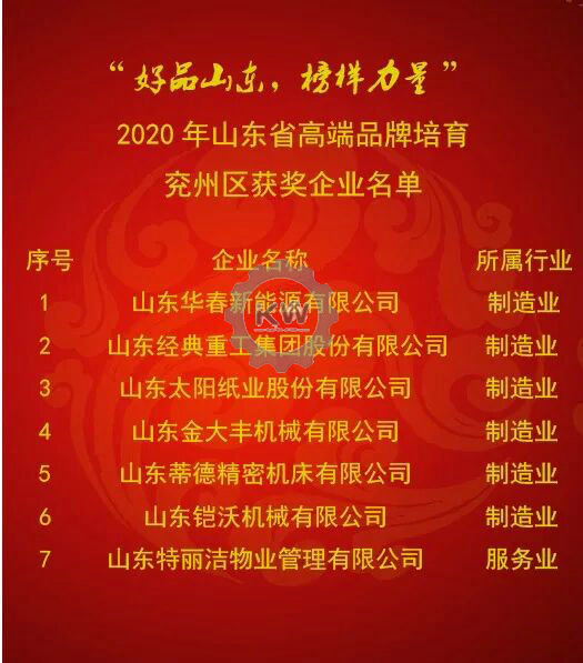 5月8日,山東省市場監(jiān)管局隆重舉辦“好品山東,榜樣力量”2020年“中國品牌日”(山東)活動,現(xiàn)場發(fā)布了2020年度山東省高端品牌培育企業(yè)名單,我區(qū)7家企業(yè)光榮上榜,占濟寧市全部18家上榜企業(yè)的39%,在濟寧市各縣市區(qū)中名列榜首。具體獲獎名單如下: